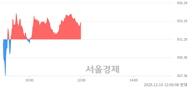 10일 오후 12시 0분 현재 코스닥은 전일 대비 2.02p(+0.22%) 오른 933.37로, 40(매도):60(매수)의 매수우위를 기록 중이다.